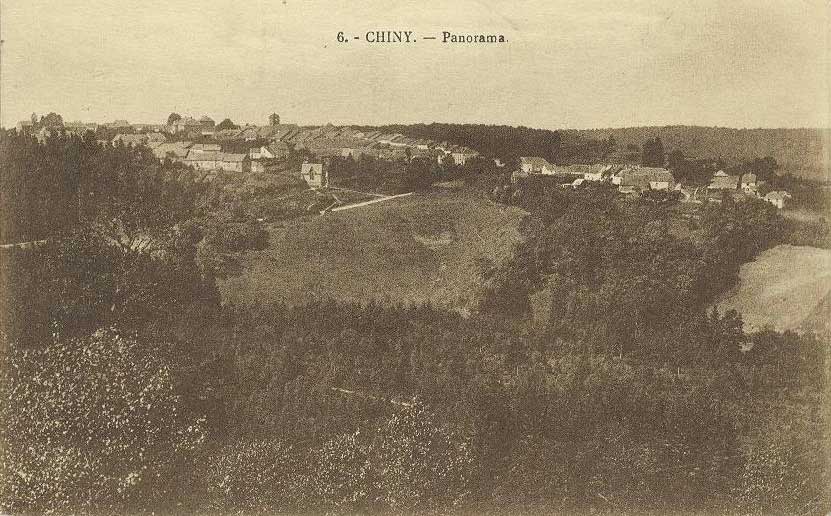 Sur ordre de Charles Quint et de Philippe II, Jacob van Deventer (1500/1503-1575) a effectué, entre 1550 et 1565, le relevé de 73 places des Pays-Bas espagnols. Son travail sur carte se termina en décembre 1571. En province de Luxembourg, Arlon, Bastogne et Chiny ont reçu sa visite. La carte de Chiny daterait de 1565. Elle montre le noyau ancien avec ses rues au tracé toujours reconnaissable dans le tissu urbain actuel. La fortification y est précédée d'un large fossé doublé d'une muraille défendue à l'est par une tour semi-circulaire. La porte se trouve à l'autre extrémité et conduit vers l'ancienne église encadrée dans un losange de rues. A l'extrême pointe de l'éperon, domine le donjon, grosse masse carrée, surveillant l'ensemble du site et son accès vers le bas de la côte, le méandre et le moulin. Quelques bâtiments épars occupent la bourgade médiévale. Vers le sud, en direction du plateau et de la Gaume, la ville s'est développée hors les murs. On y retrouve un schéma typique d'autres villages gaumais où les maisons sont alignées sur une large rue où est réservé, au centre, un îlot comprenant parfois l'église : plan de village forestier articulé sur le chemin arraché « à la forêt pour la pénétrer et en évacuer le bois ».
