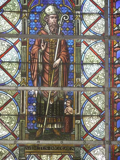 Illustration : vitrail représentant Saint-Nicolas dans l’actuelle église de Lacuisine (4 kms de Chiny).